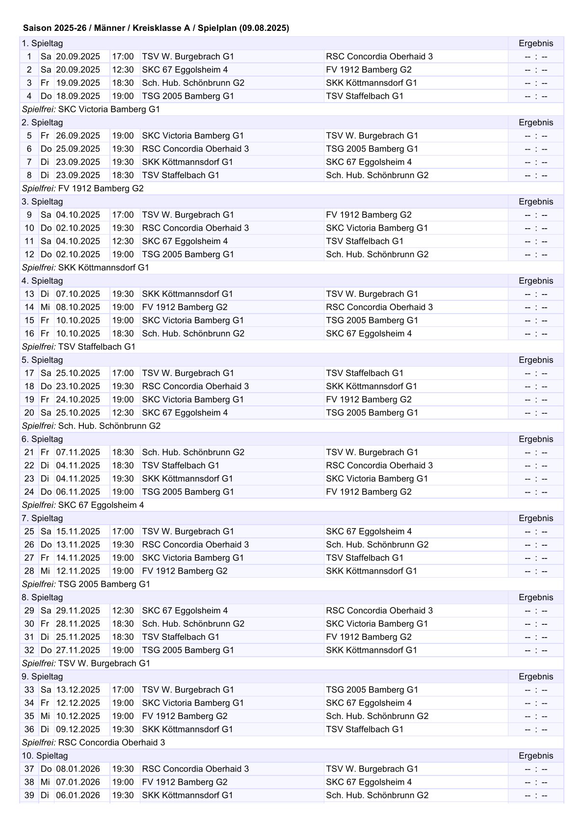 21.12.2025 um 13:00 Uhr -> SKC Victoria Bamberg – FSV Erlangen-Bruck (Nachholspiel!)