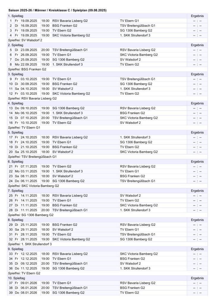 15.11.2025 um 13:00 Uhr -> SKC Victoria Bamberg – SKC Unterharmersbach